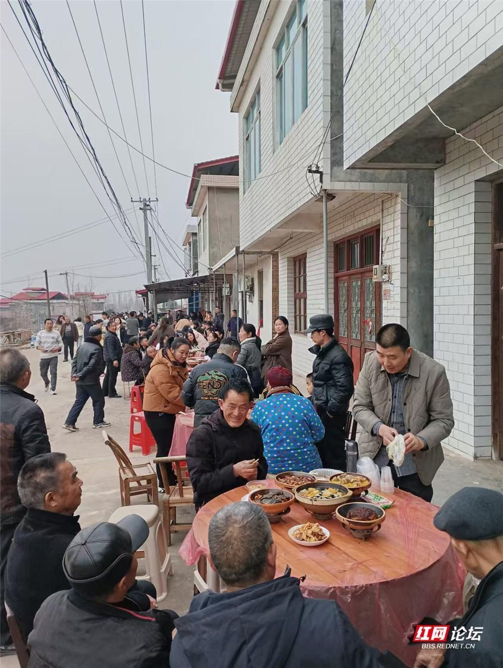 长堤之上,丰盛的宴席依次排开,宛如一条美食长龙。一道道色香味俱佳的菜肴摆满桌面,蒸腾的热气裹挟着诱人的香气,在空气中肆意弥漫。村民们围坐一排,分享着过去一年的丰收喜悦,交流着生活中的家长里短。欢声笑语,伴随着杯盘碰撞声,谱写出一曲和谐的新春乐章。这场盛会的成功举办,离不开以爱心企业家杨怀为代表的一众热心人士。在活动筹备之初,他们便开始四处奔走,精心策划每一个环节,从食材采购到场地布置,事无巨细,亲力亲为,只为给村民们搭建起一座情感沟通的桥梁,让这份春节的团聚更具温度。